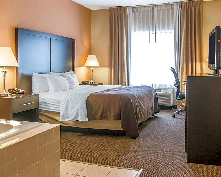 This suite features a spa bath, along with a flat-screen TV and a work desk.